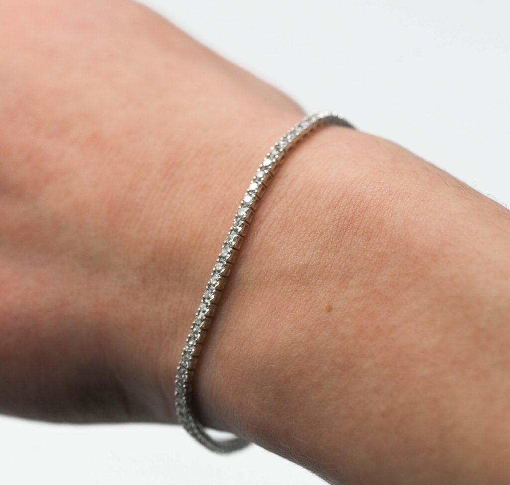 An 18ct diamond line bracelet, set in white gold with seventy six diamonds, total diamond weight 2.62ct, length approx 18.5cm.