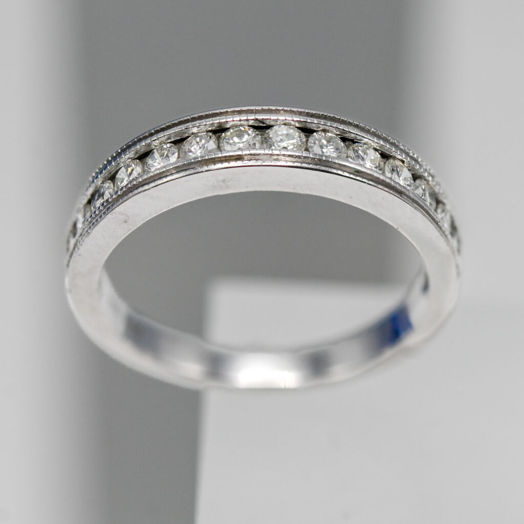 An 18ct white gold diamond half eternity ring, stamped 0.50ct on the inside of the band, size P/Q.