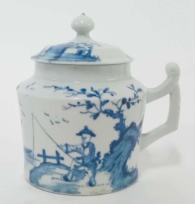 A rare 18th century mustard pot with lid, First Period Worcester.