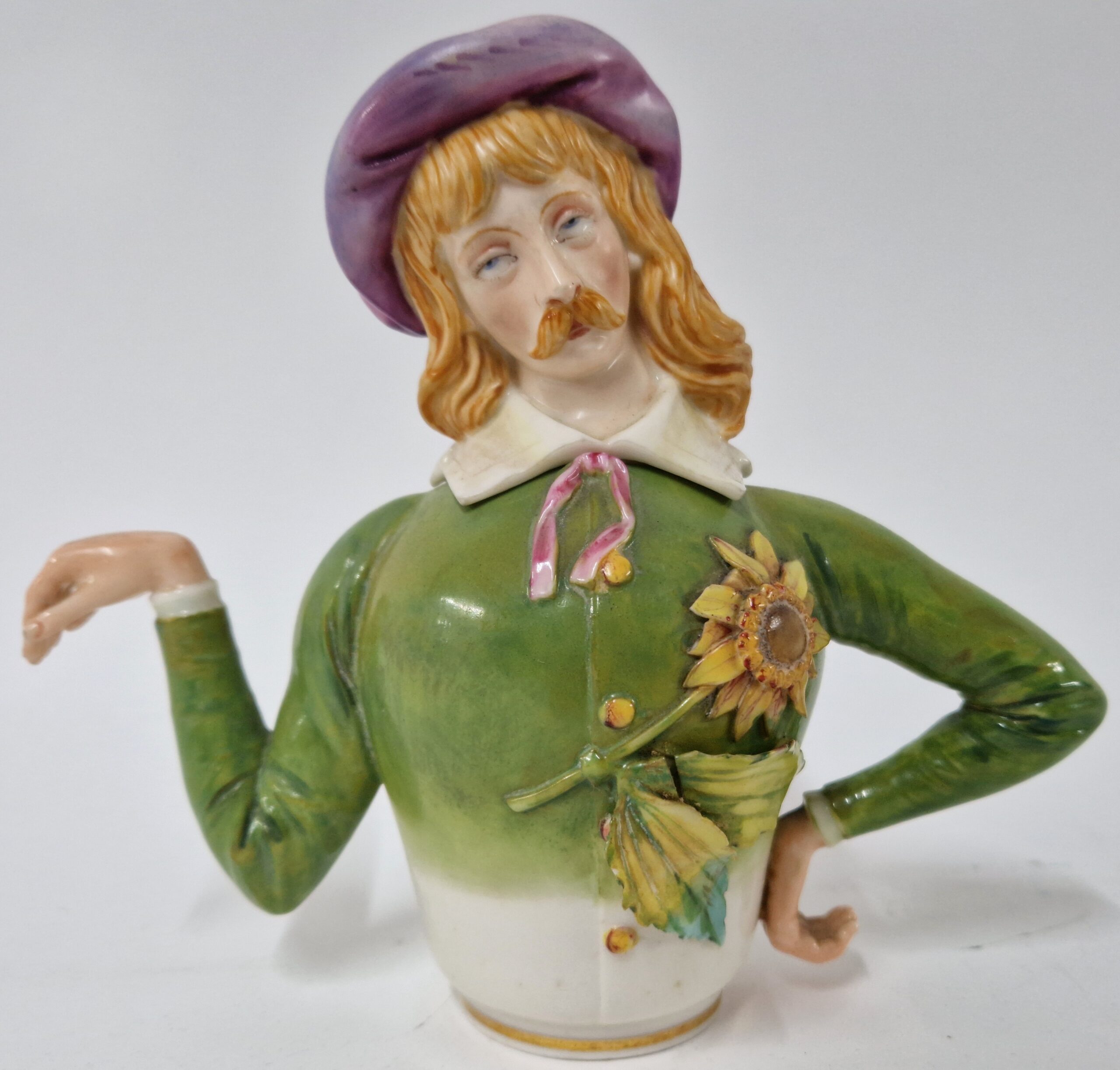 A rare Royal Worcester teapot, modelled as a satirical take on Oscar Wilde